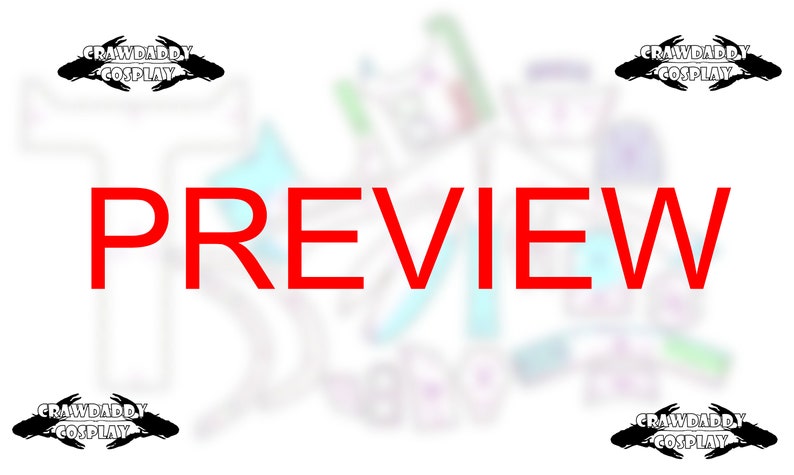 - A PDF guide that contains information needed to construct the piece (instructions, recommended foam thicknesses, etc.) ending in "Guide."