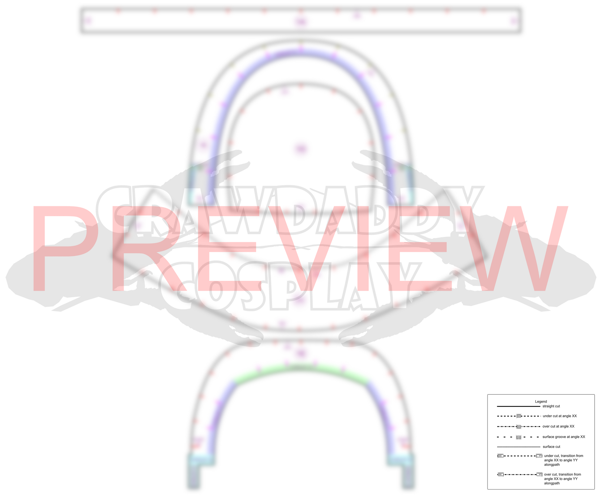 This piece is INTERMEDIATE difficulty. This piece should not be attempted until some experience with EVA foam cutting and construction techniques has been obtained.