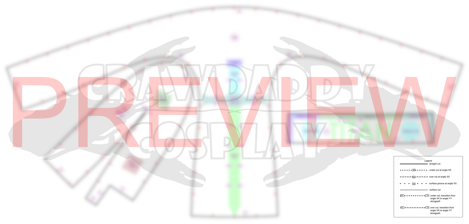 - A PDF guide that contains information needed to construct the piece (instructions, recommended foam thicknesses, etc.) ending in "Guide."